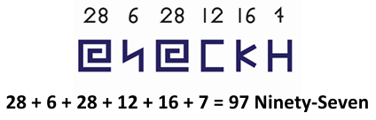 The summation* of 97 = 9 + 7 = 16 Sixteen. This represents The Absolute Unit ι creation of the “6 SIX” divine Ellanio creation.